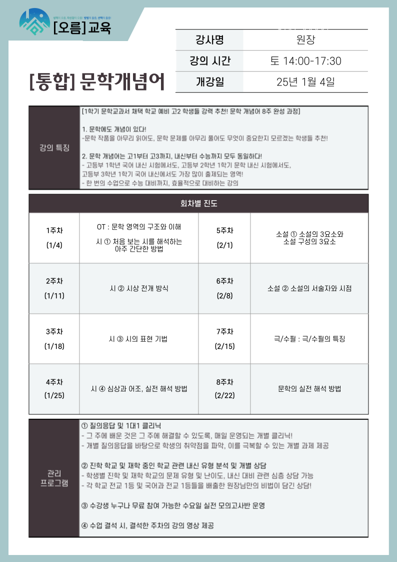 [1학기 문학교과서 채택 학교 예비 고2 학생들 강력 추천! 문학 개념어 8주 완성 과정]