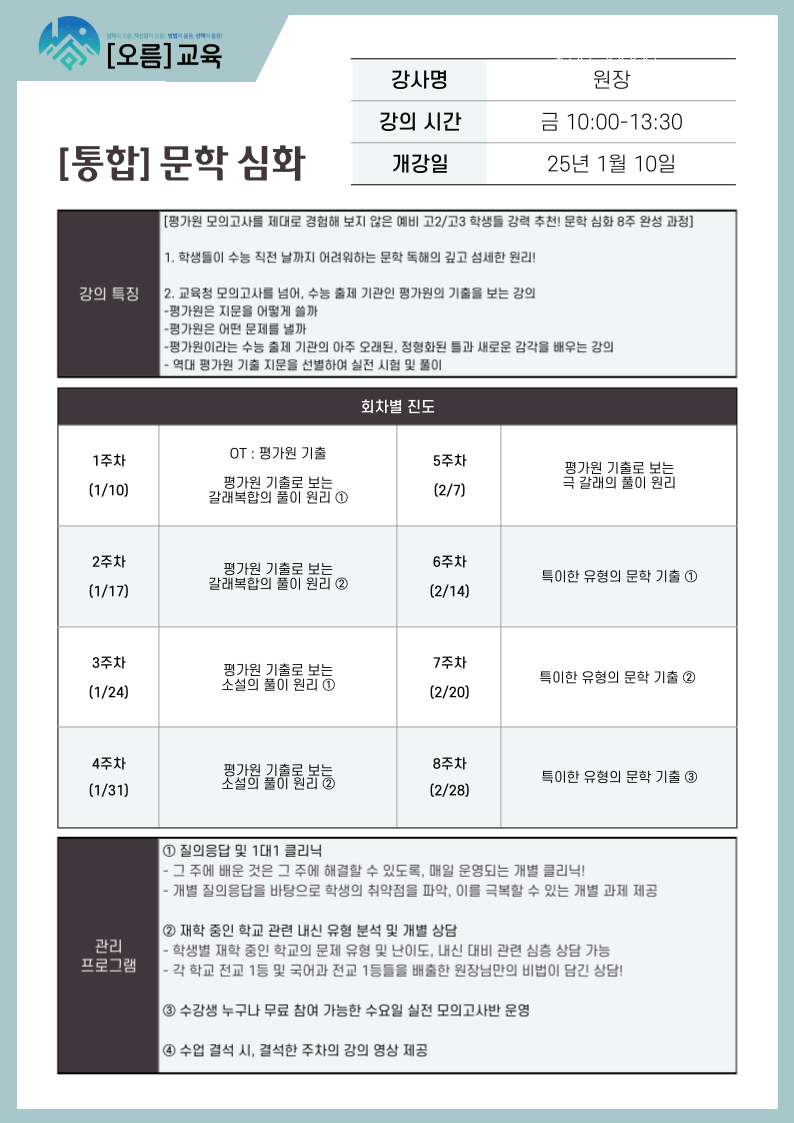 [평가원 모의고사를 제대로 경험해 보지 않은 예비 고2/고3 학생들 강력 추천! 문학 심화 8주 완성 과정]